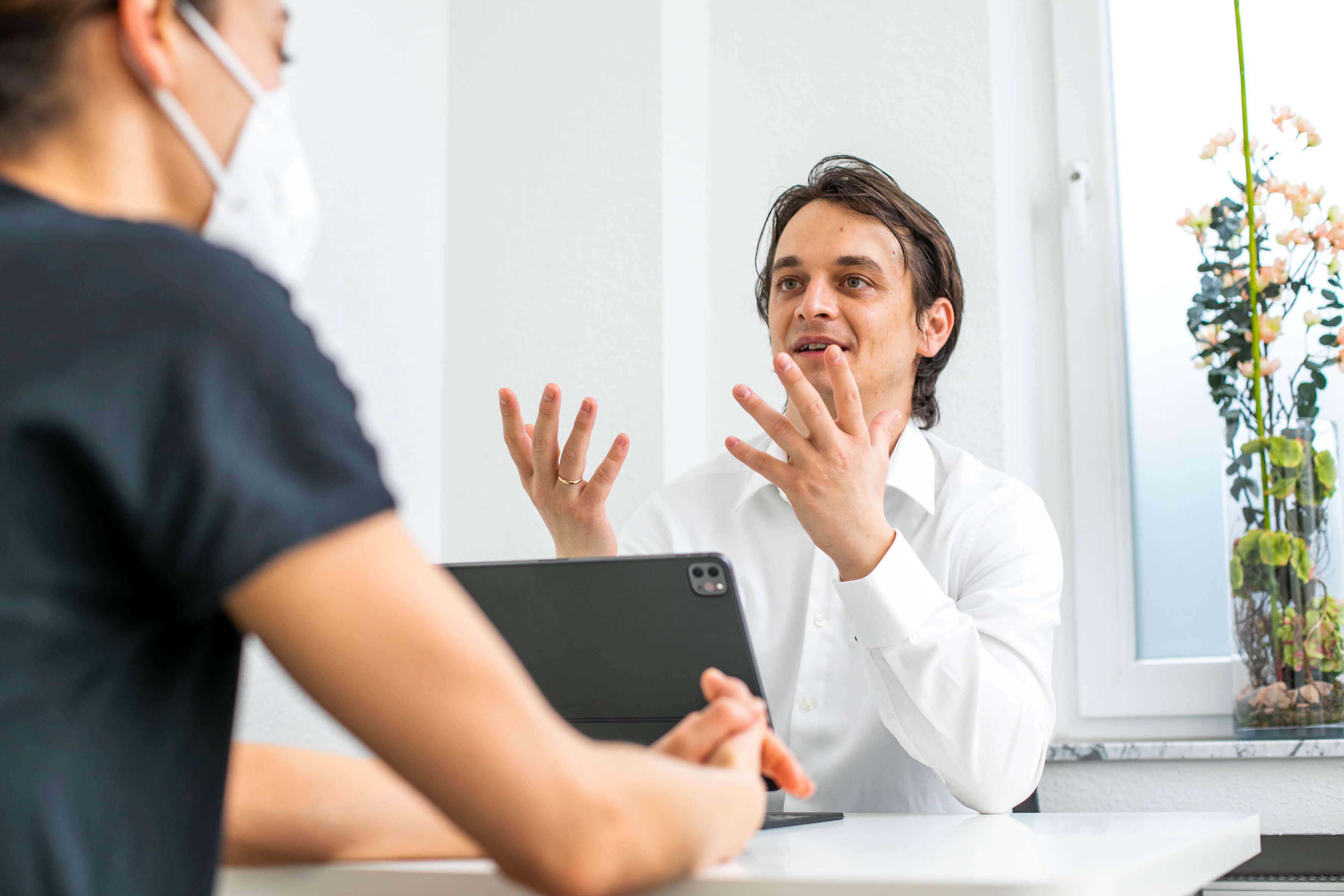 Deniz Cakir stellt sich, das Team und die freundlichen Räumlichkeiten in Essen-Heidhausen vor.